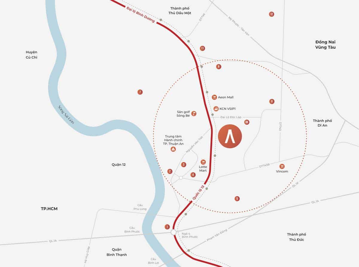 Giáp ranh 4 thành phố lớn: TP.HCM – TP. Dĩ An – TP. Thủ Dầu Một – TP. Thủ Đức